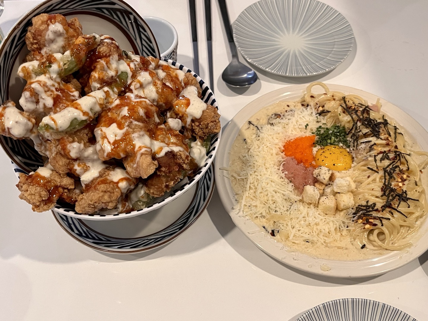 저희는 꼬꼬동, 미츠 스파이시 까르보나라, 하이볼을 주문했습니다.
