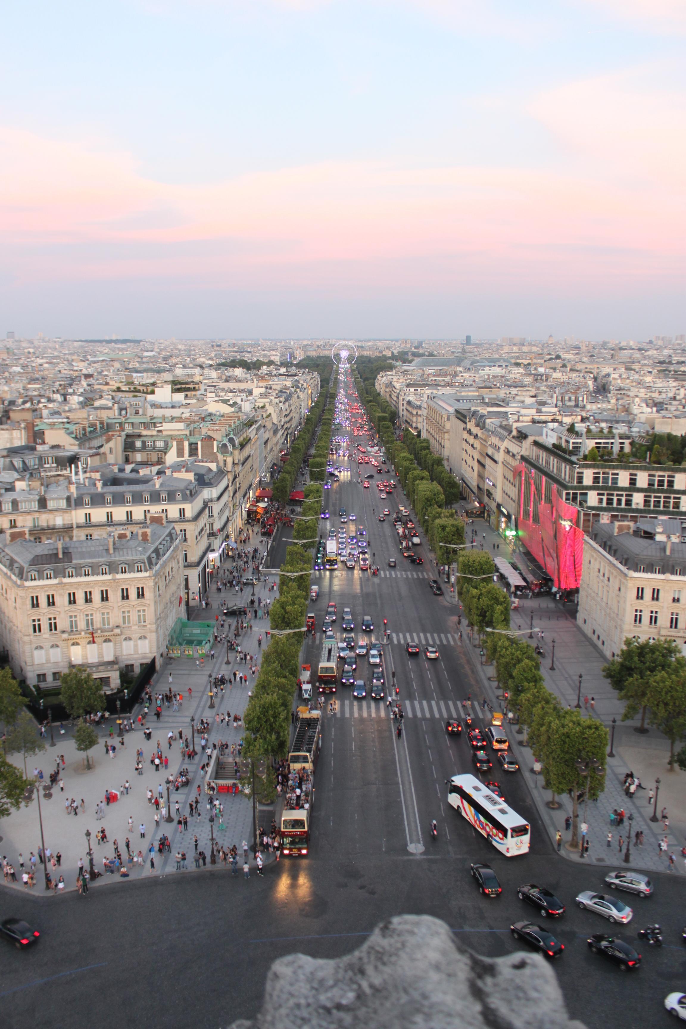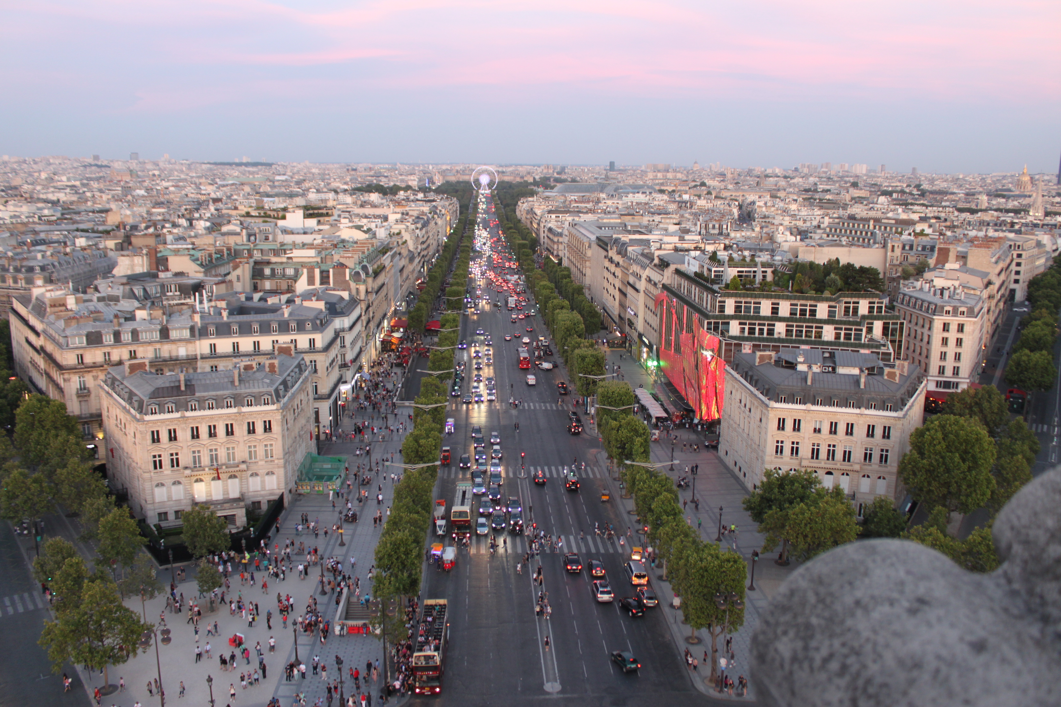 나는 개선문에서 방금 걸어온 샹젤리제 거리를 바라보았다.