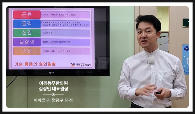 또 갈비뼈가 부러지거나 금이 갔을 때도 가슴 쪽으로 통증이 올 수 있기 때문에 먼저 흉골 상태를 점검해 보는 것이 좋습니다. 이렇게 흉골을 다치면 심한 통증이 나타나고 흉골 소리까지 나타날 수 있습니다.
